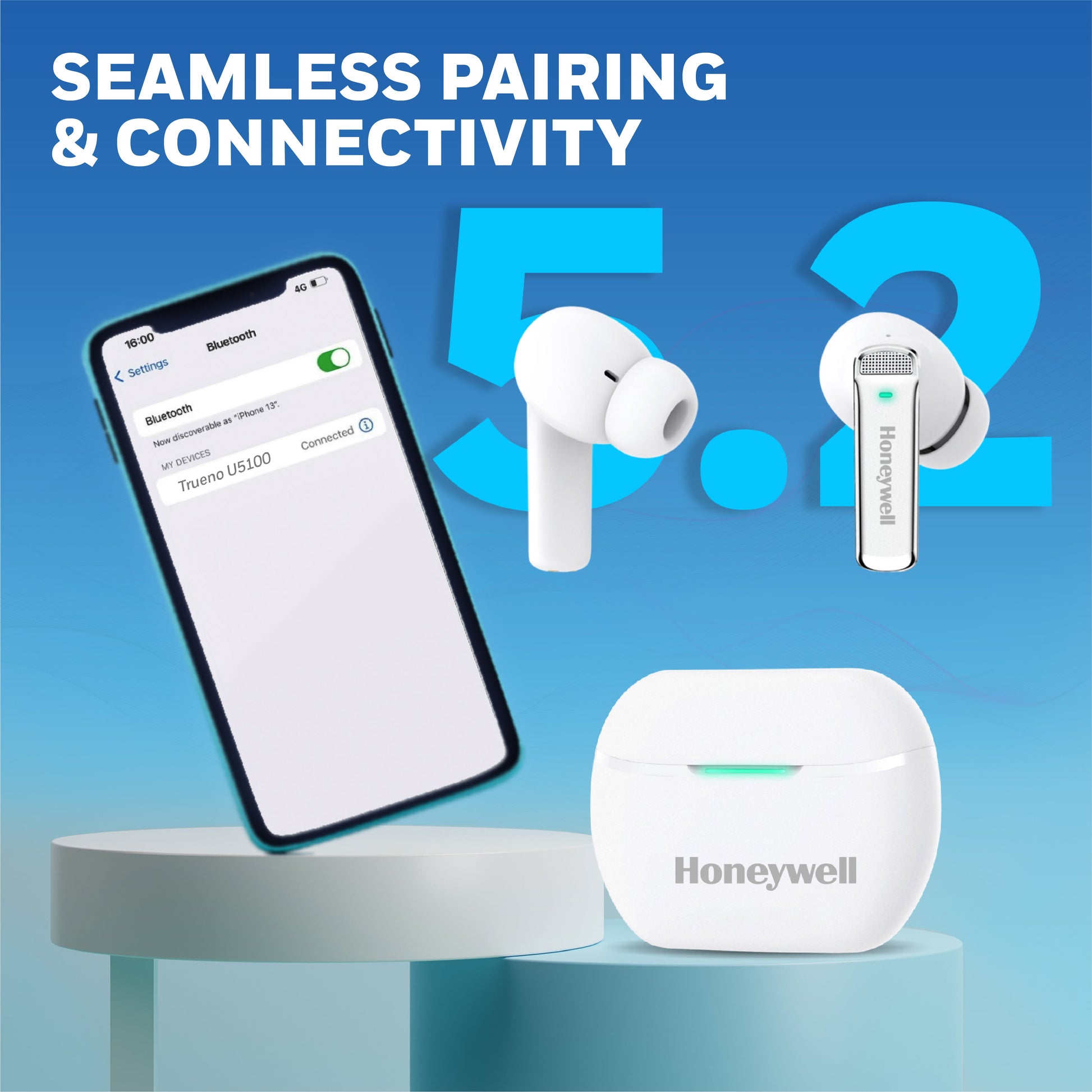 Q: What Bluetooth version do the Honeywell Trueno U5100 TWS support? Ans: Honeywell Trueno U5100 wireless earbuds uses Bluetooth V5.2, offering improved connectivity, better range (up to 10 m), and stable performance.