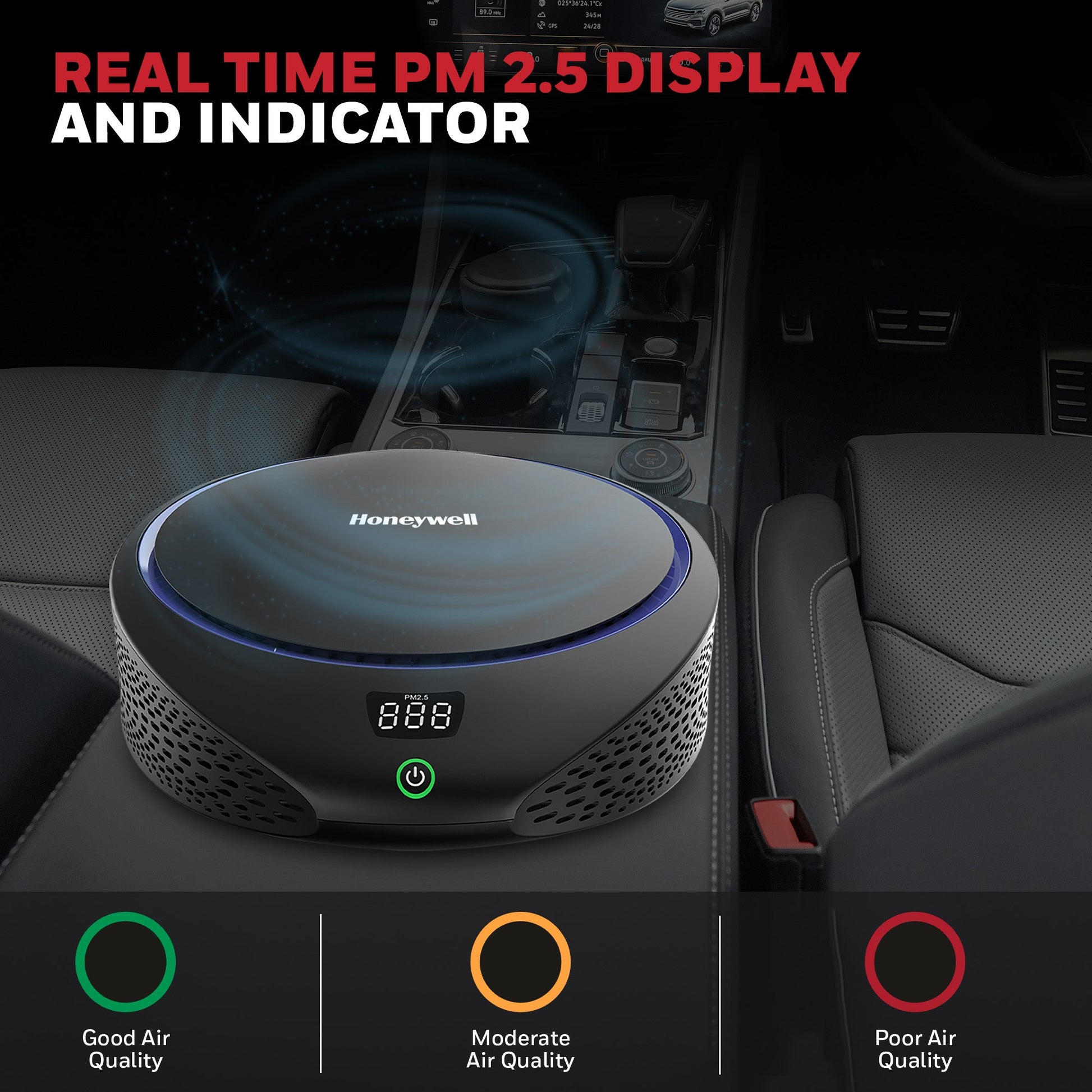 • Superior Filtration & Monitoring: Captures 99.99% of PM2.5 & PM10 particles, allergens, and microscopic pollutants while displaying real-time PM2.5 levels and an indicator for a healthier drive.