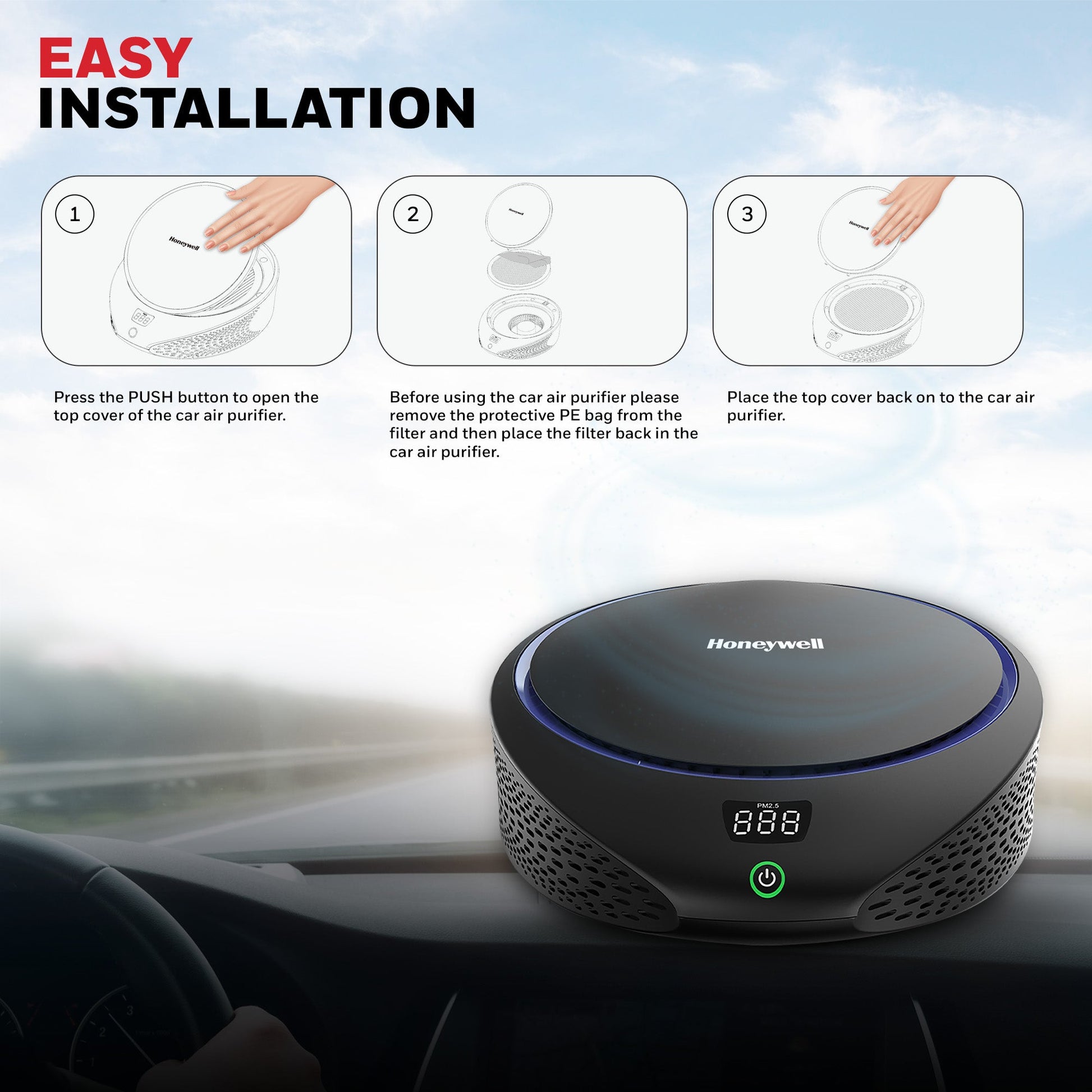 Q: How to install Honeywell Move Pure5 car air purifiers? Ans: To install the Honeywell Move Pure5 Car Air Purifier, follow these steps:
