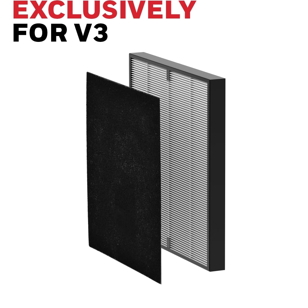 Air Touch V3 - Compound Pre-Filter + HEPA. Designed for the Air Touch V3 Air Purifier. Pre Filter captures large particles such as dust, lint, fibres, hair and pet fur at 1st stage and increases the life of the HEPA H13 Filter. HEPA H13 filter removes 99.99% of allergens and microscopic pollutants above 0.3 microns, including PM2.5 and pollen.
