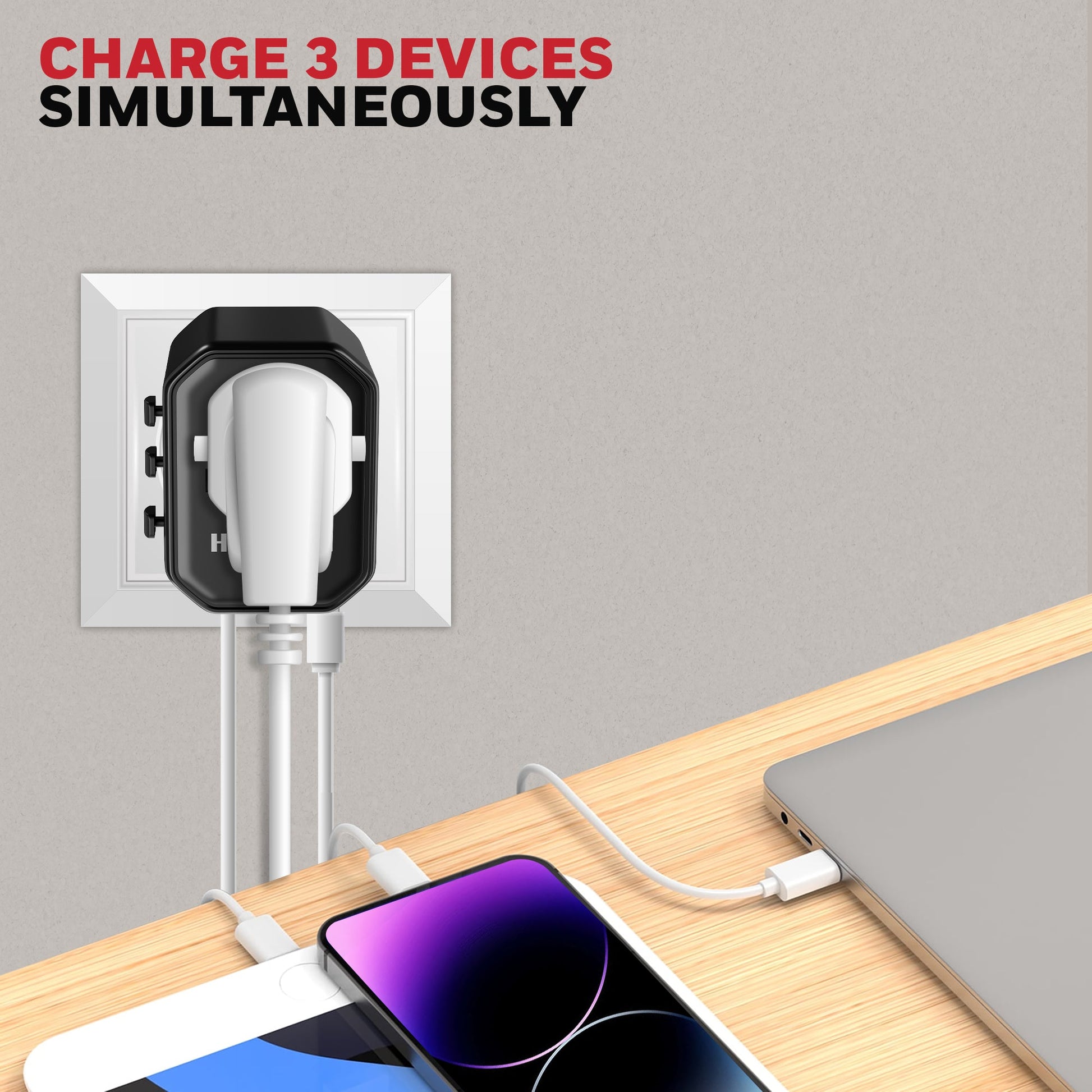 - Ultra-fast charge for Android Smartphones, iPhones, iPads, Tablets & Laptops