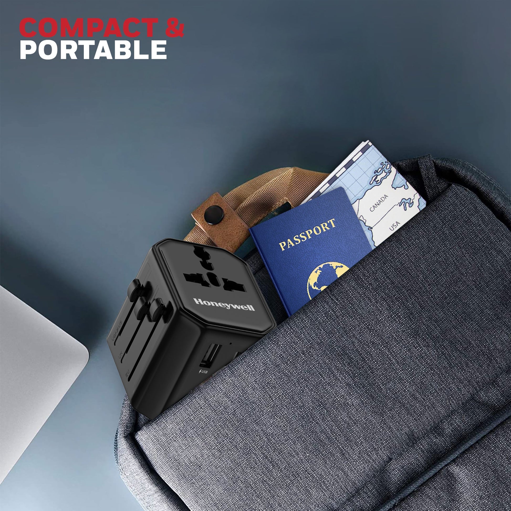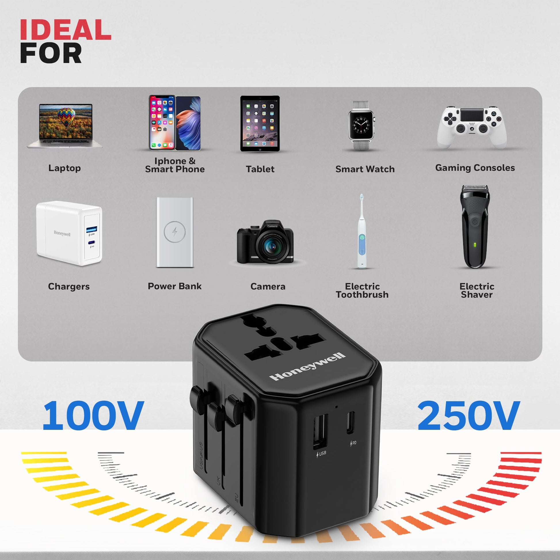 Q: What is the Honeywell Universal World Travel Adapter 12W and what devices can it charge? Ans: The Honeywell Universal World Travel Adapter 12W is a compact, best universal travel plug adapter designed for global travelers. It can charge Three devices simultaneously and is compatible with Android smartphones, iPhones, iPads, laptops, tablets, and other electronic devices.