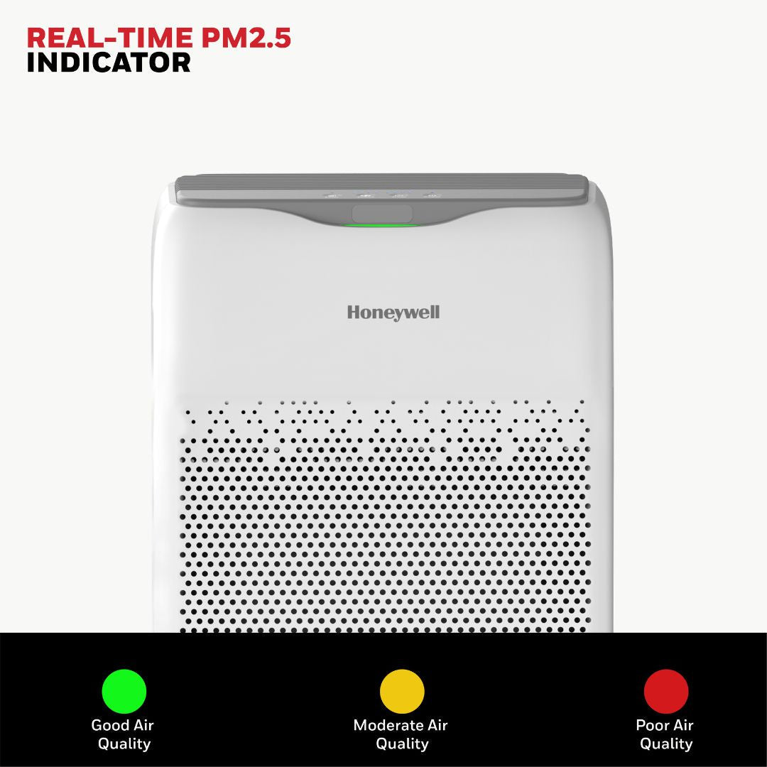 Honeywell Air Touch V2 Air Purifier offers the ultimate air purification solution, ensuring a healthier and more comfortable indoor environment. With CADR of 250 m3/h, it can cover an area of up to 388 sq. ft / 36 sq. mtr with its advanced 4 Stage Filtration process through Pre filter, High Grade H13 HEPA Filter, Silver ION Anti H1N1 Layer and Activated carbon filter removing up to 99.99% of pollutants, micro-allergens from the air including dust, pollen, VOC (Volatile Organic Compounds) viruses, bacteria & smoke. Real-time PM2.5 level Indicator to monitor air quality. Air purification cycle runs every 12 minutes to ensure optimal air purification. Experience superior air quality with Front & Upward Airflow technology, enhanced by 3D Air Flow. Enhance your indoor air quality with Air Touch V2 Air Purifier for home. Filter life of up to 9000 hrs or 1 year. Filter Reset Indicator alerts you when it's time to replace the filter. Quietly operates with a noise level of only 32.5dB/A. 2 Years Manufacturer Warranty.