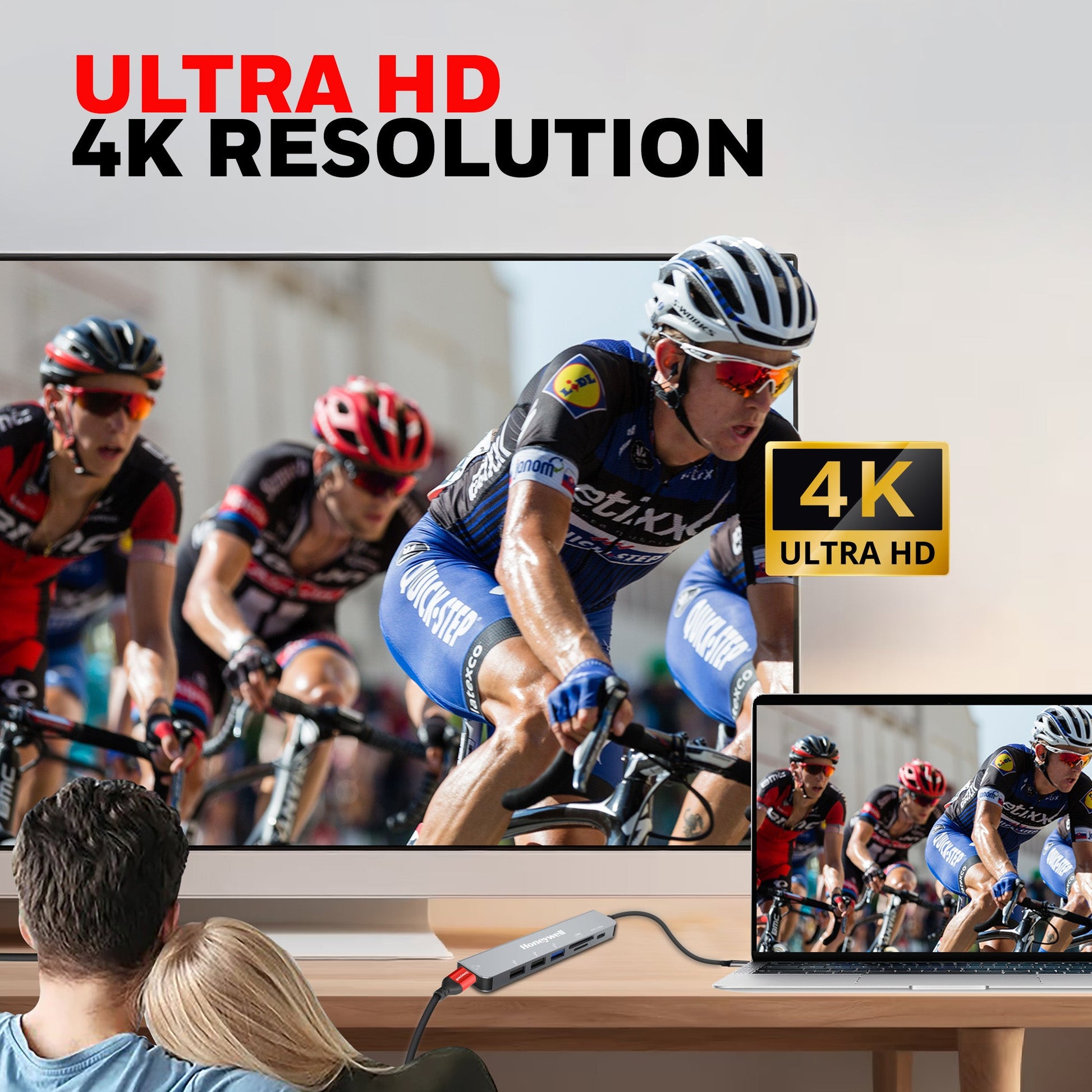 Q: What are the key features of the Honeywell 7-in-1 Type-C Docking Station? Ans: The Honeywell 7-in-1 Type-C Docking Station is built to deliver seamless multitasking and universal connectivity. Its standout features include: 1. Hot swap support: Safely connect or disconnect devices without shutting down your system 2. Effortless plug-and-play functionality: No driver installation or setup needed 3. Thunderbolt 4 compatible: Supports high-speed data and video transmission with modern devices 4. Connect up to 7 devices simultaneously: Ideal for handling multiple peripherals at once 5. Ultra high-speed SD and microSD card slots: Quick media access and file transfers 6. USB 3.0 and USB 2.0 ports: Ensures compatibility with both new and legacy devices