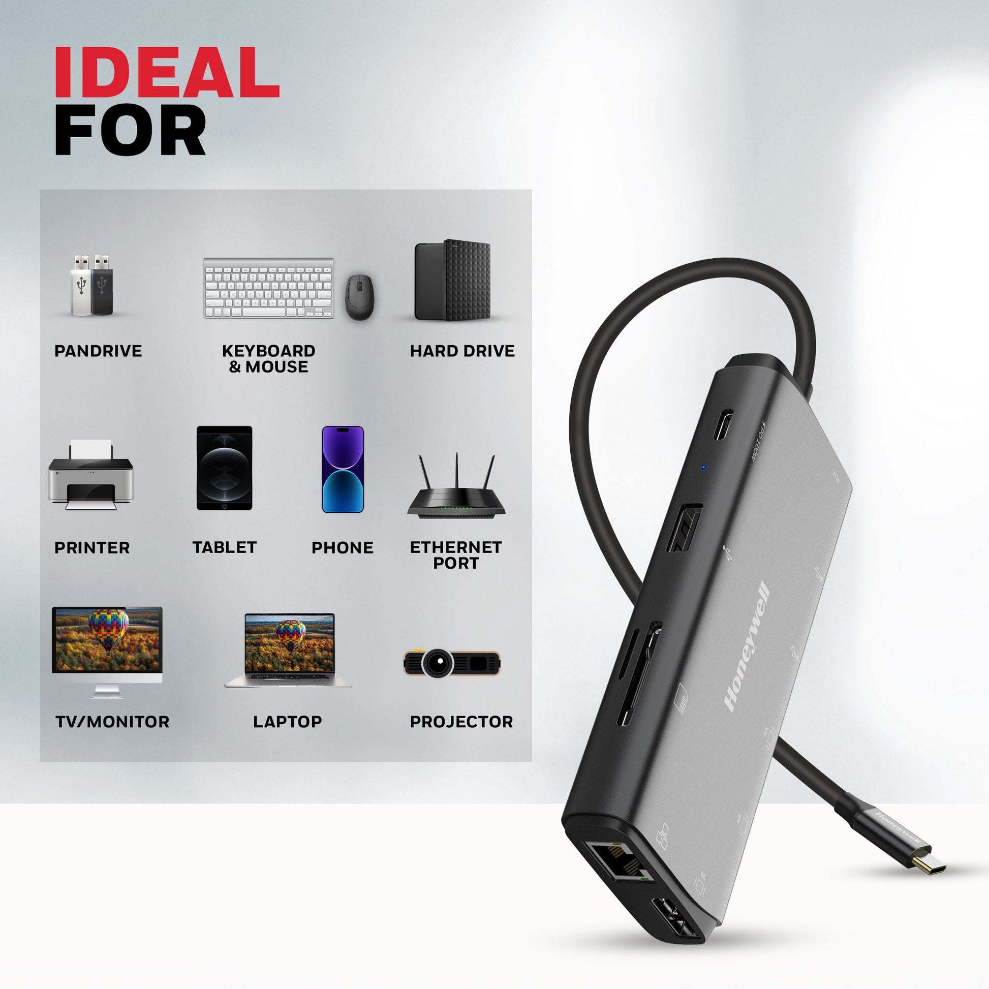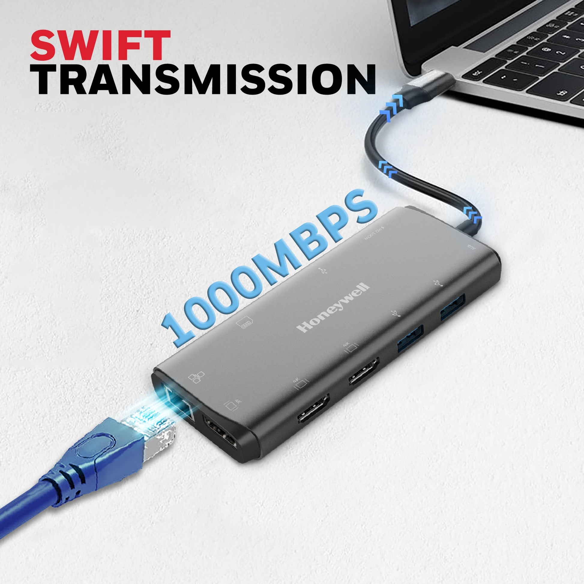 Q: What are the key features of the Honeywell 11-in-1 Type-C Docking Station? Ans: The Honeywell 11-in-1 Type-C Docking Station is designed for seamless multitasking, offering universal connectivity and performance. Key features include: 1. Stylish & Rugged Metallic Finish: Premium look with everyday durability 2. Effortless Plug-and-Play Operation: No drivers required; quick and easy setup 3. Supports Up to 11 Devices Simultaneously: Ideal for multitasking and expanded workflows 4. USB 3.2 Gen 1 Type-C Connector Cable: Fast and reliable data transmission 5. Hot Swap Support: Connect/disconnect devices without restarting the system 6. MST (Multi-Stream Transport) Support: Extend display across multiple monitors via a single port 7. SST (Single-Stream Transport) Support: Standard single-display output mode for basic setups