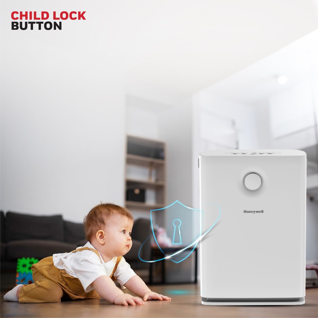 Ans: To use the Child Lock feature in Honeywell Air Touch V3 air purifier, follow these steps: 1. Activate Child Lock: Press and hold the CHILD LOCK button for 3 seconds until you hear a beep. 2. While Active: All buttons are disabled, but the purifier continues working in the current mode. 3. Deactivate Child Lock: Press and hold the CHILD LOCK button for 3 seconds again until you hear a beep.