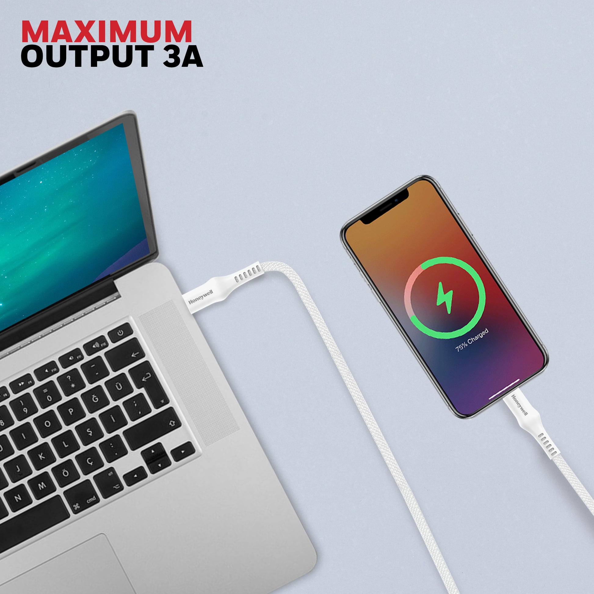 Q: Does the Honeywell Type-C cable support fast charging? Ans: Yes, it supports Qualcomm QC 3.0 and Power Delivery up to 60W for quick and efficient charging.