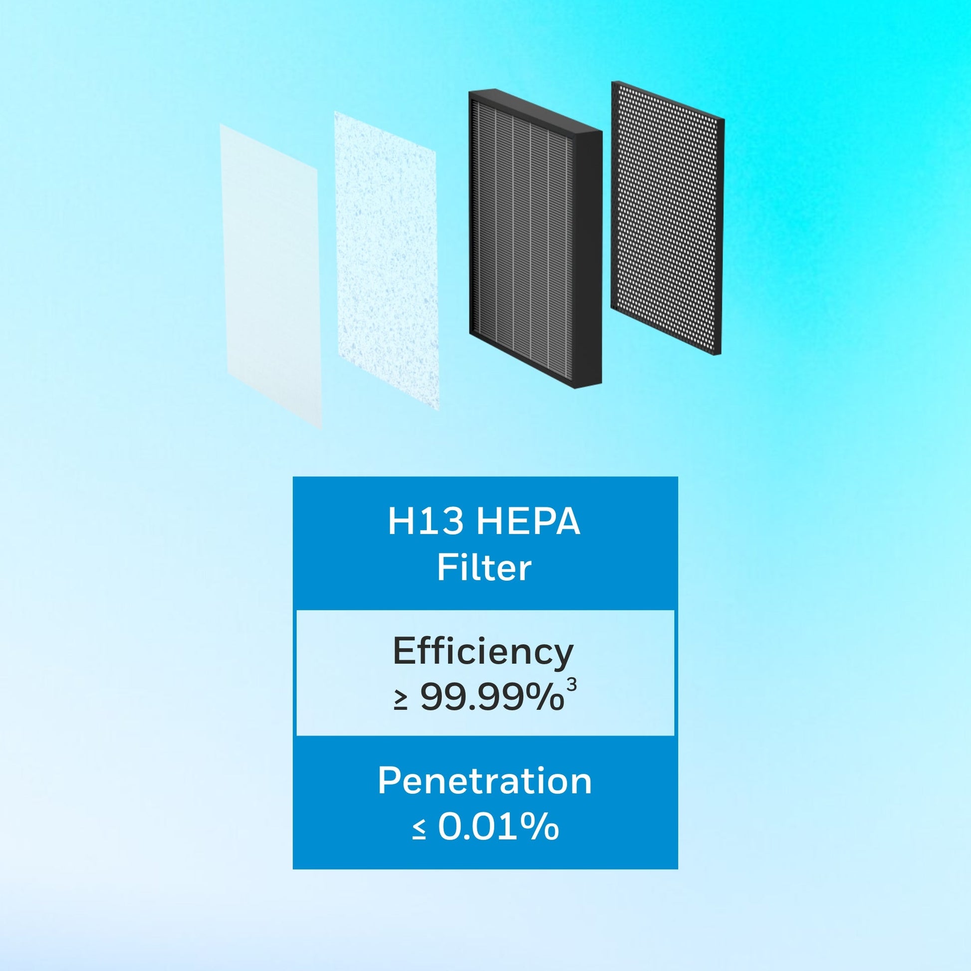 - ตัวกรอง HEPA H13 กำจัดสารก่อภูมิแพ้และมลพิษขนาดเล็ก