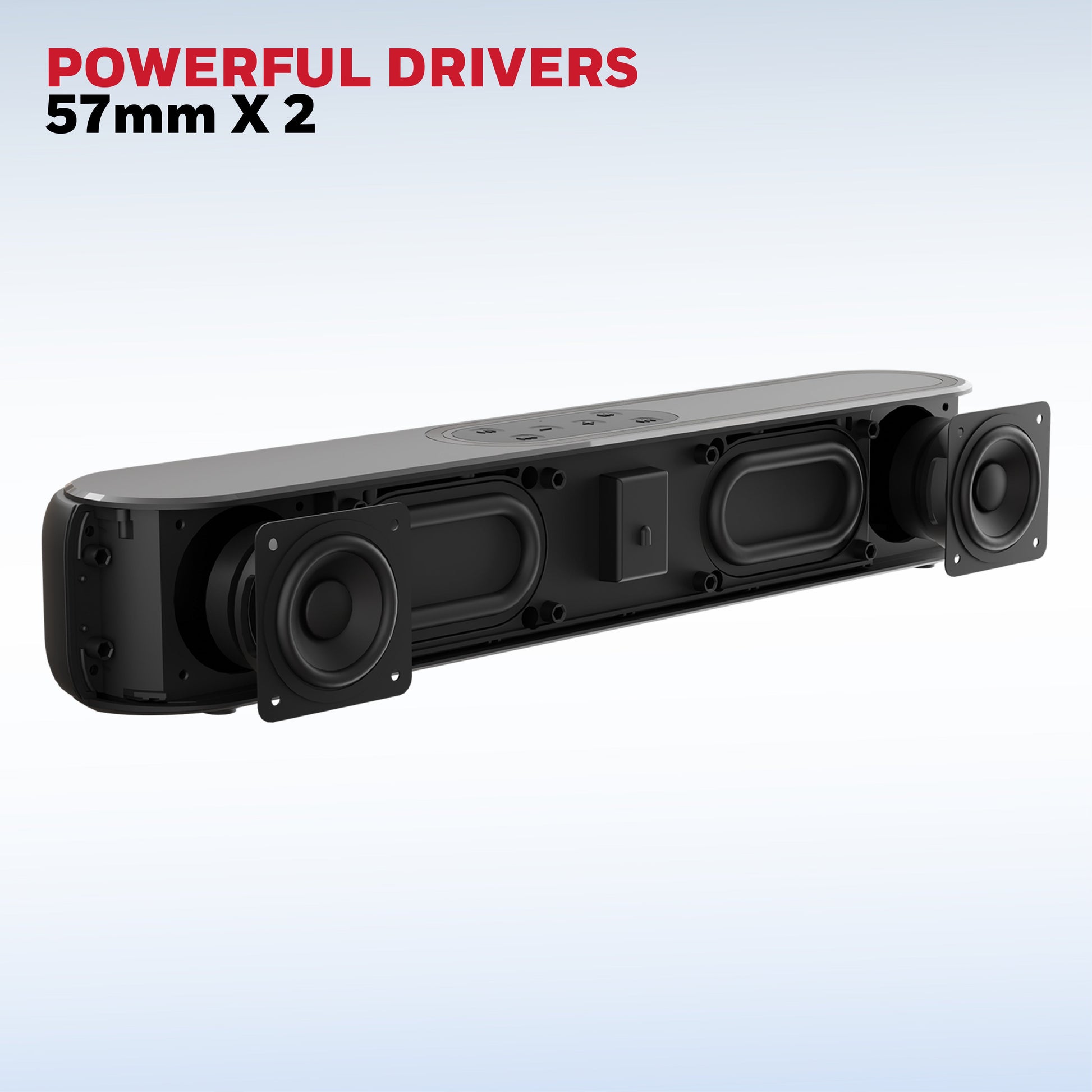 - เสียงสเตอริโอทรงพลัง 30 วัตต์: ไดรเวอร์คู่ขนาด 57 มม. มอบเอาต์พุต 2.0 ช่องสัญญาณที่สมบูรณ์แบบ สร้างประสบการณ์เสียงที่ดื่มด่ำ เหมาะสำหรับภาพยนตร์ เพลง และเกม