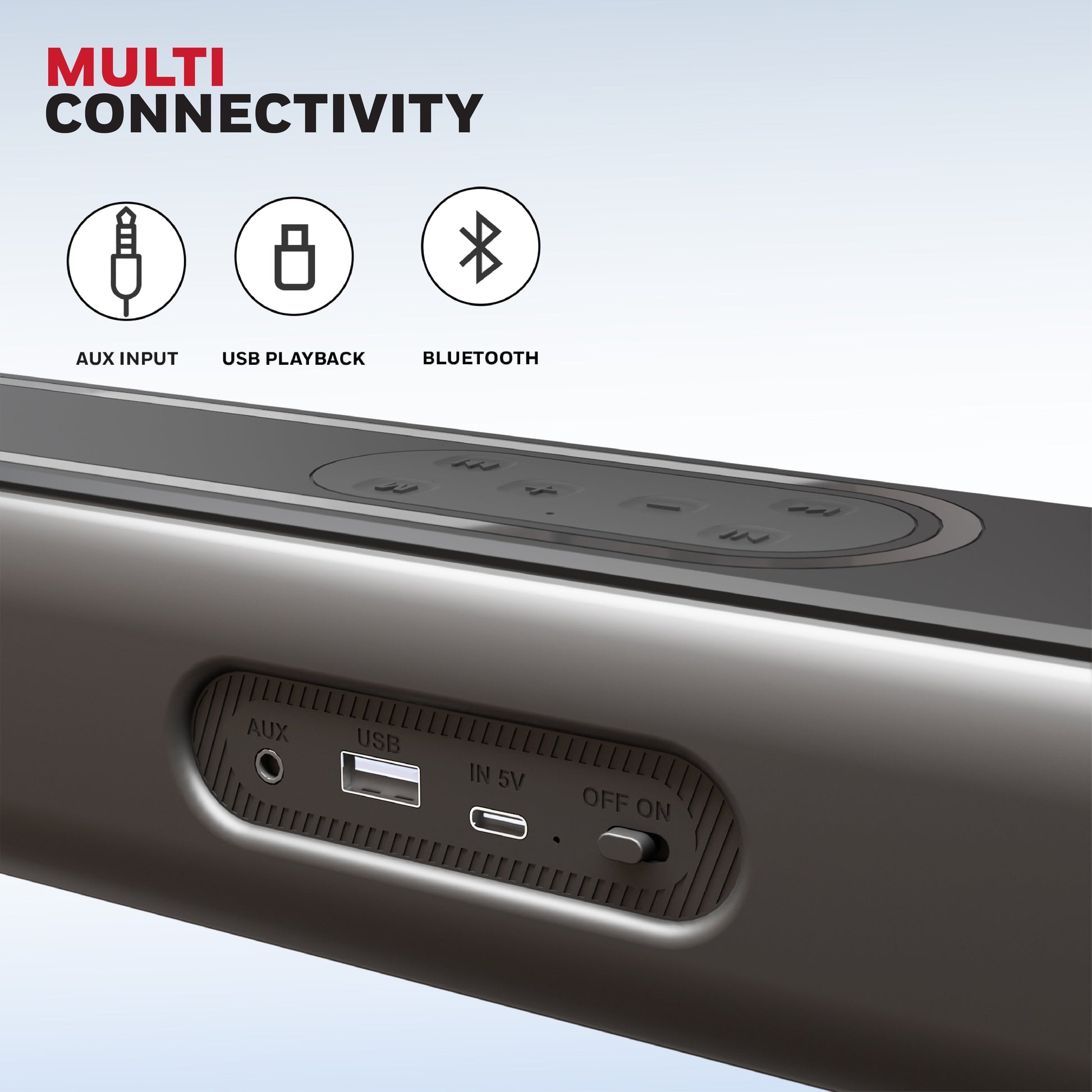 ยกระดับประสบการณ์เสียงของคุณด้วย Honeywell Moxie V3000 Soundbar ซาวด์บาร์ขนาดกะทัดรัดที่ให้พลังเสียงสเตอริโอ 30 วัตต์ พร้อมเบสหนักแน่น เล่นเพลงได้นานถึง 12 ชั่วโมง ขับเคลื่อนด้วยไดรเวอร์คู่ขนาด 57 มม. และ Bluetooth v5.3+EDR ให้เสียงที่เต็มอิ่มและดื่มด่ำ ไม่ว่าจะดูหนัง เล่นเกม หรือสตรีมเพลงก็ตาม ด้วยโหมดอินพุต AUX, USB และ HDMI/ARC มอบตัวเลือกการเล่นที่หลากหลาย ดีไซน์เพรียวบาง พกพาสะดวก ใช้งานได้กับทุกพื้นที่ ควบคุมเพลงได้อย่างง่ายดายด้วยปุ่มควบคุมที่ใช้งานง่าย เพลิดเพลินกับความบันเทิงอย่างต่อเนื่อง พร้อมการรับประกันจากผู้ผลิต 2 ปี