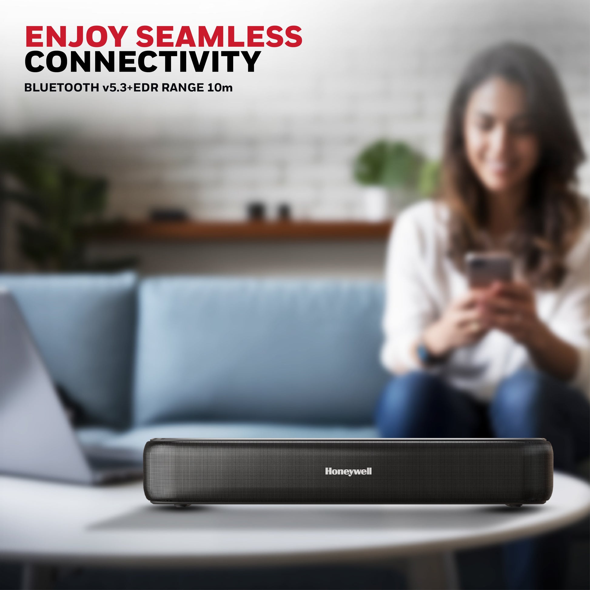 ถาม: ทำไมฉันจึงควรซื้อ Honeywell Moxie V3000 Soundbar? ตอบ: คุณควรพิจารณาซื้อ Honeywell Moxie V3000 Soundbar เนื่องจากมีดีไซน์อันชาญฉลาดและประสิทธิภาพที่เชื่อถือได้ในทุกวัน: 1. เอาต์พุตเสียงอันทรงพลัง 30 วัตต์เพื่อเสียงที่สมจริง 2. การเชื่อมต่อที่ราบรื่นด้วย Bluetooth V5.3 และระยะไร้สาย 10 เมตร 3. แบตเตอรี่ลิเธียมไอออน 2400mAh ในตัว รองรับการเล่นได้นานถึง 12 ชั่วโมง ด้วยการชาร์จเพียง 4 ชั่วโมง 4. พอร์ตชาร์จ Type-C เพื่อการชาร์จที่เร็วและมีประสิทธิภาพ 5. เสียงสเตอริโอพรีเมียมส่งผ่านไดรเวอร์ขนาด 57 มม.*2 6. ตัวเลือกการเชื่อมต่อหลากหลาย – บลูทูธ, AUX 3.5 มม. และ USB 7. การควบคุมแบบบูรณาการเพื่อการเข้าถึงและการปรับแต่งเสียงที่ง่ายดาย 8. ขนาดกะทัดรัด ความยาว 41 ซม. เหมาะสำหรับโต๊ะ ชั้นวาง หรือการติดตั้งแบบกะทัดรัด