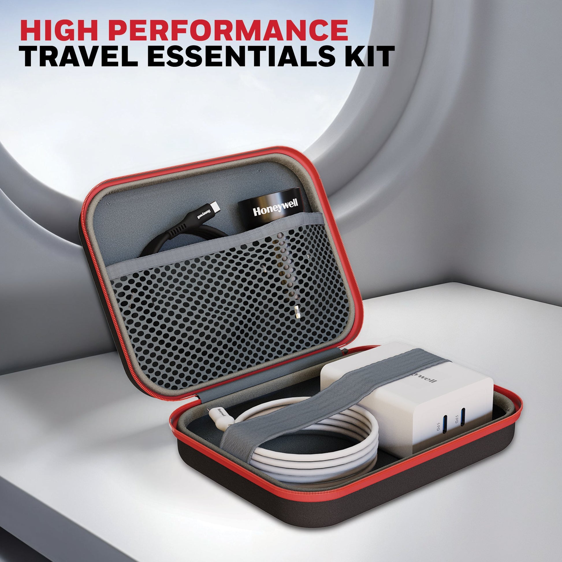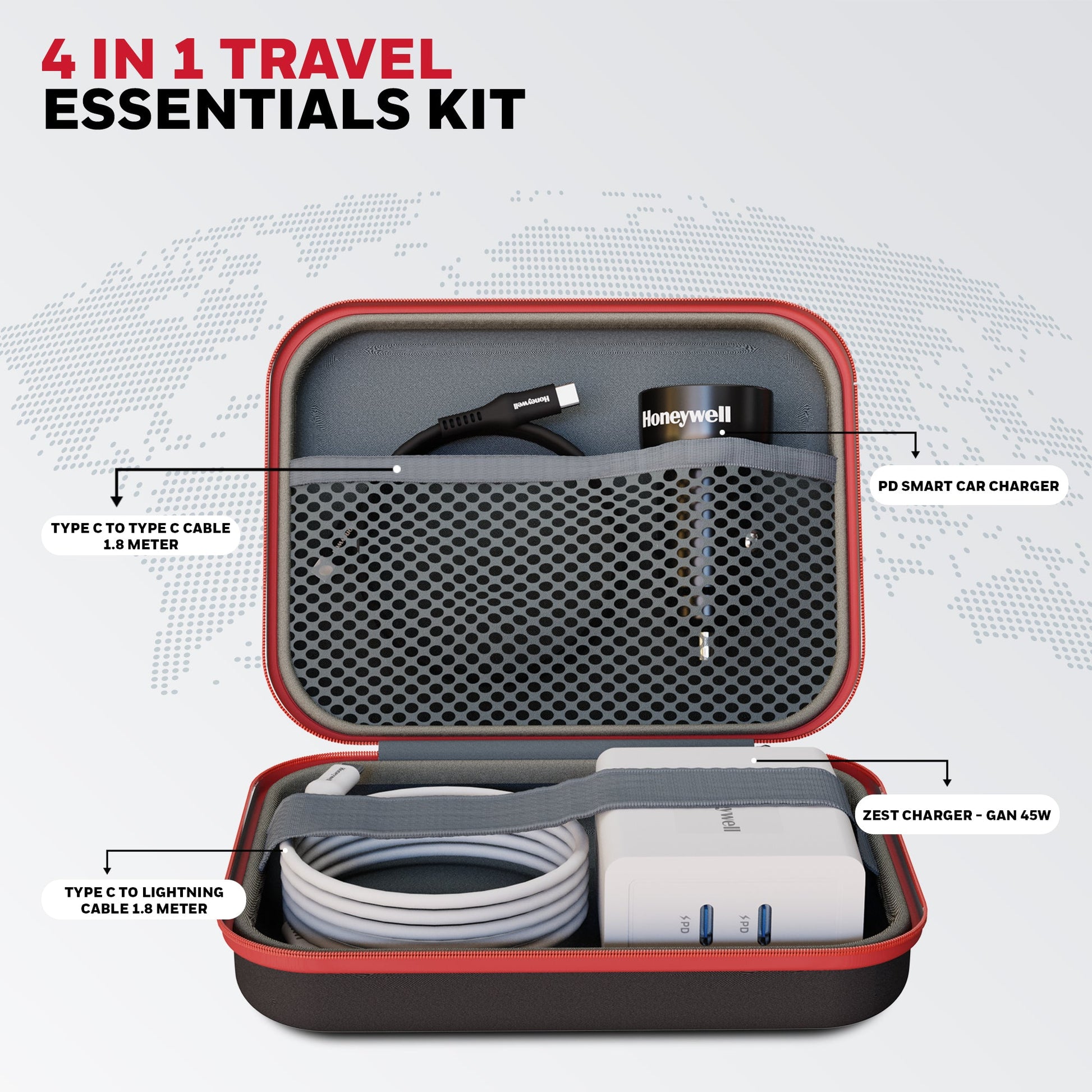 ชุดอุปกรณ์ชาร์จ Honeywell Travel Essential Kit – 4 in 1 คือเพื่อนคู่ใจในทุกการเดินทาง ประกอบด้วยเครื่องชาร์จเร็ว Zest 45W GaN ที่ทรงพลัง สายเคเบิลยาว 1.8 เมตรสองเส้น (Type-C to C และ Type-C to Lightning) และที่ชาร์จในรถยนต์ PD Smart Car Charger 18W บรรจุในกล่องกันน้ำระดับพรีเมียมพร้อมแถบยางยืดและช่องตาข่าย ช่วยเก็บของสำคัญของคุณให้ปลอดภัย มั่นคง และหยิบใช้ได้ง่าย ใช้งานได้กับสมาร์ทโฟน แท็บเล็ต แล็ปท็อป และอื่นๆ อีกมากมาย พร้อมการรับประกันจากผู้ผลิต 2 ปี