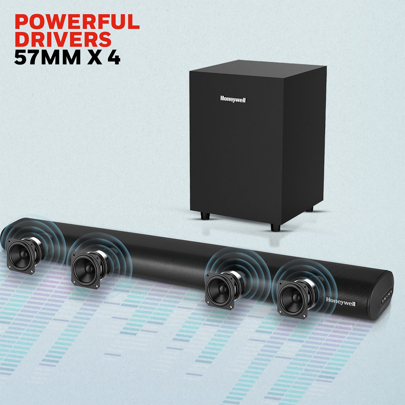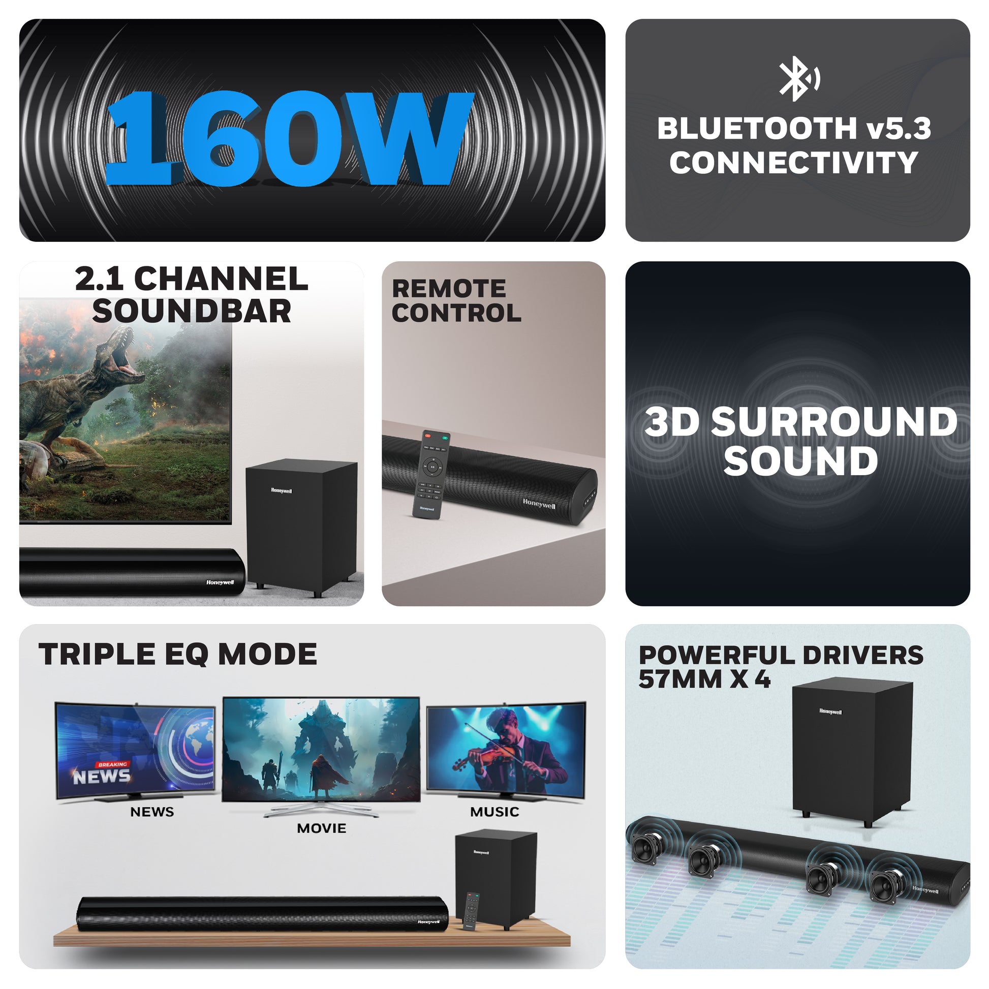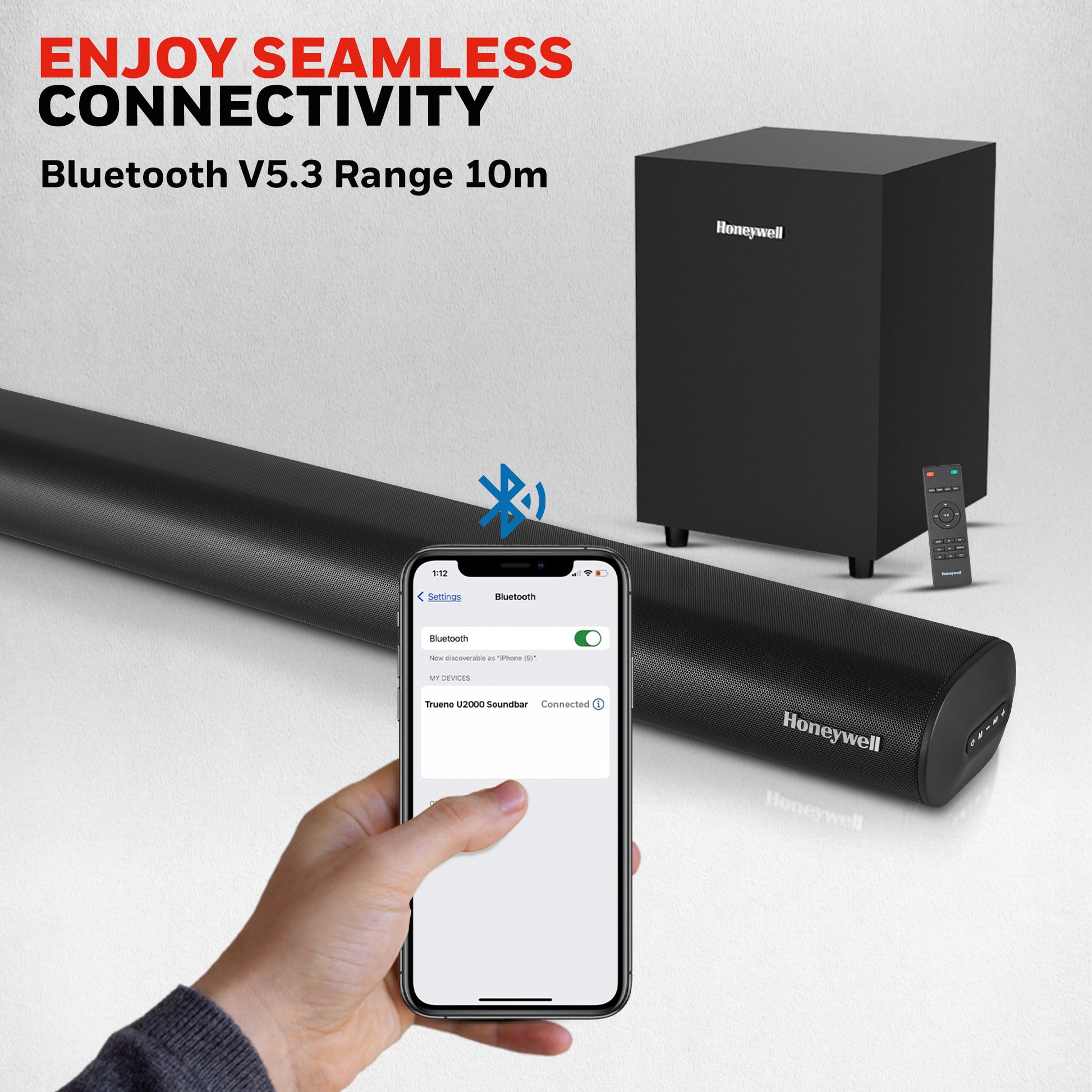ถาม: ทำไมฉันจึงควรซื้อ Honeywell Trueno U2000 Soundbar? ตอบ: คุณควรพิจารณาซื้อซาวด์บาร์ Honeywell Trueno U2000 เนื่องจากมีดีไซน์อันชาญฉลาดและประสิทธิภาพที่เชื่อถือได้ในทุกวัน: 1. เอาต์พุต RMS 160W มอบเสียงที่ทรงพลังและเต็มห้อง 2. ไดรเวอร์ขนาด 57 มม.*4 ในซาวด์บาร์สร้างประสบการณ์เสียงและการเล่นเกมที่ดื่มด่ำ 3. สัมผัสประสบการณ์เสียงระดับโรงภาพยนตร์ด้วยซับวูฟเฟอร์ทรงพลังที่มีไดรเวอร์ขนาด 133.3 มม. 4. เพลิดเพลินไปกับเสียงคุณภาพสูงที่ชัดใสด้วยระบบเสียง 2.1 แชนเนล 5. สตรีมแบบไร้สายผ่าน Bluetooth V5.3 + EDR ในระยะ 10 เมตรจากสมาร์ทโฟน พีซี แท็บเล็ต หรือทีวี 6. โหมดการเล่น 5 โหมด: บลูทูธ, AUX 3.5 มม., USB, ออปติคัล และ HDMI/ARC เพื่อการเชื่อมต่อที่หลากหลาย 7. ควบคุมระดับเสียงและการเล่นได้อย่างง่ายดายด้วยรีโมทที่ใช้งานง่ายซึ่งรวมอยู่ด้วย 8. การเคลือบเงาสีดำพรีเมียมพร้อมดีไซน์เรียบง่ายทันสมัย 9. เหมาะอย่างยิ่งสำหรับโทรทัศน์ขนาดตั้งแต่ 43 นิ้วถึง 70 นิ้ว