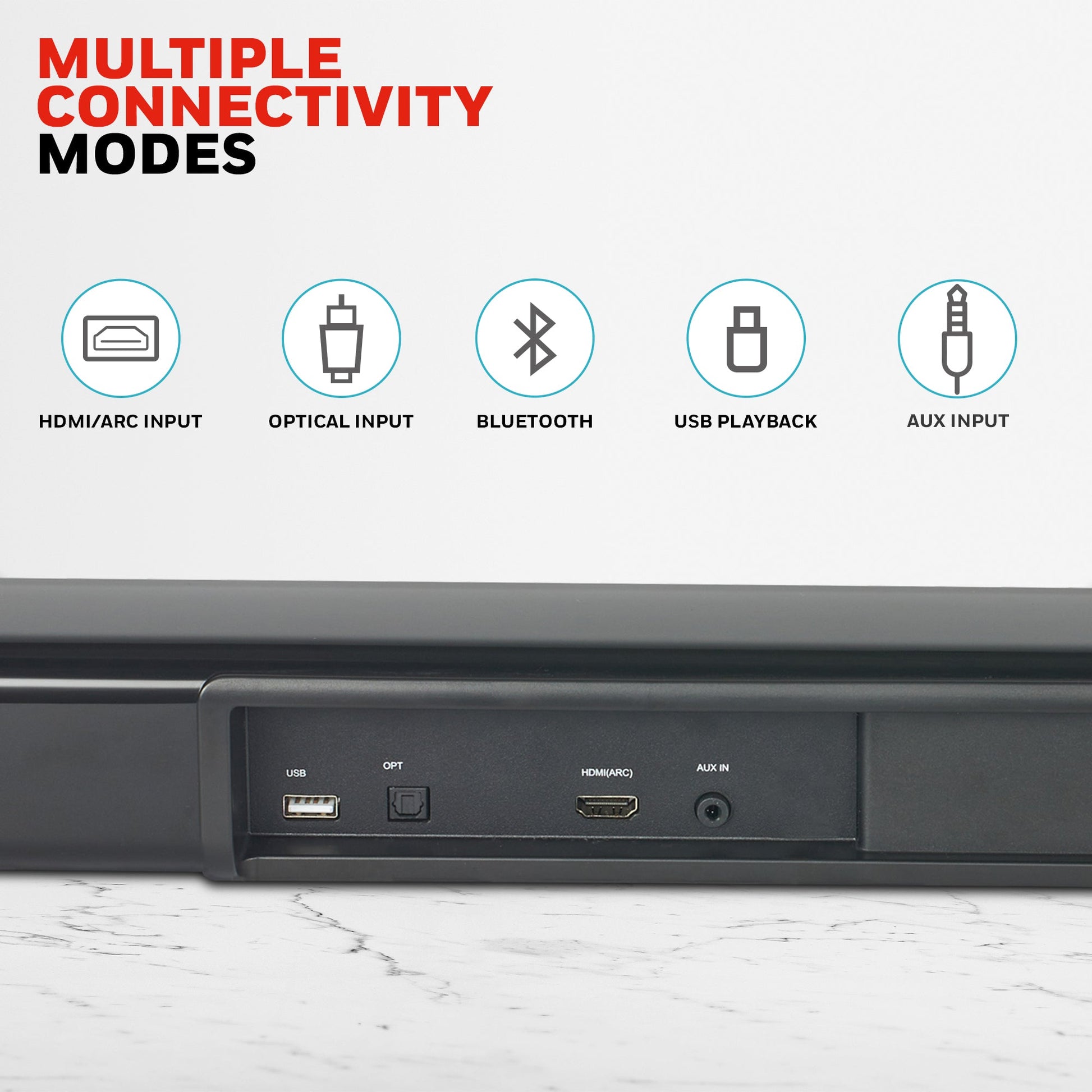 - โหมดการเล่น 5 โหมด: เพลิดเพลินกับเนื้อหาที่ปราศจากการบิดเบือนผ่านบลูทูธ, AUX 3.5 มม., USB, อินพุตออปติคัล และสาย HDMI/ARC