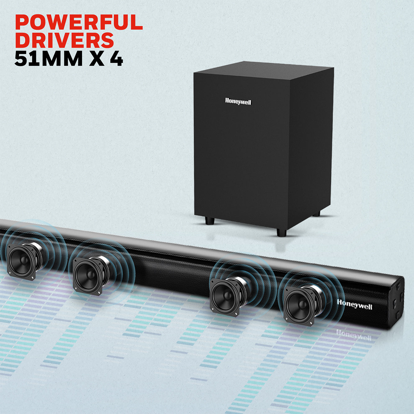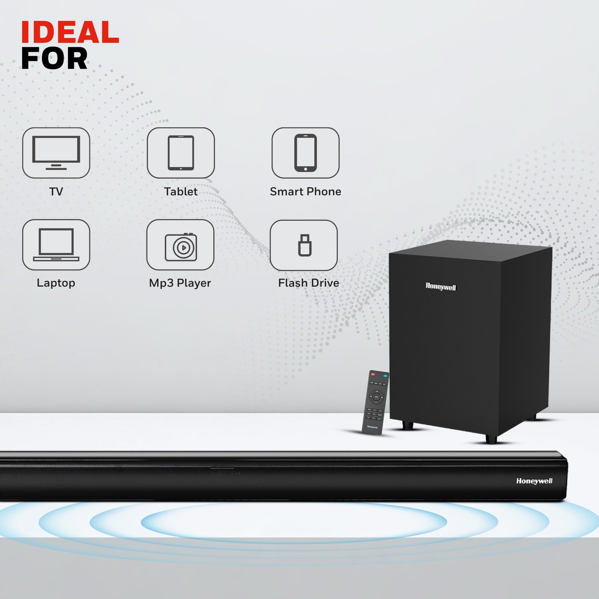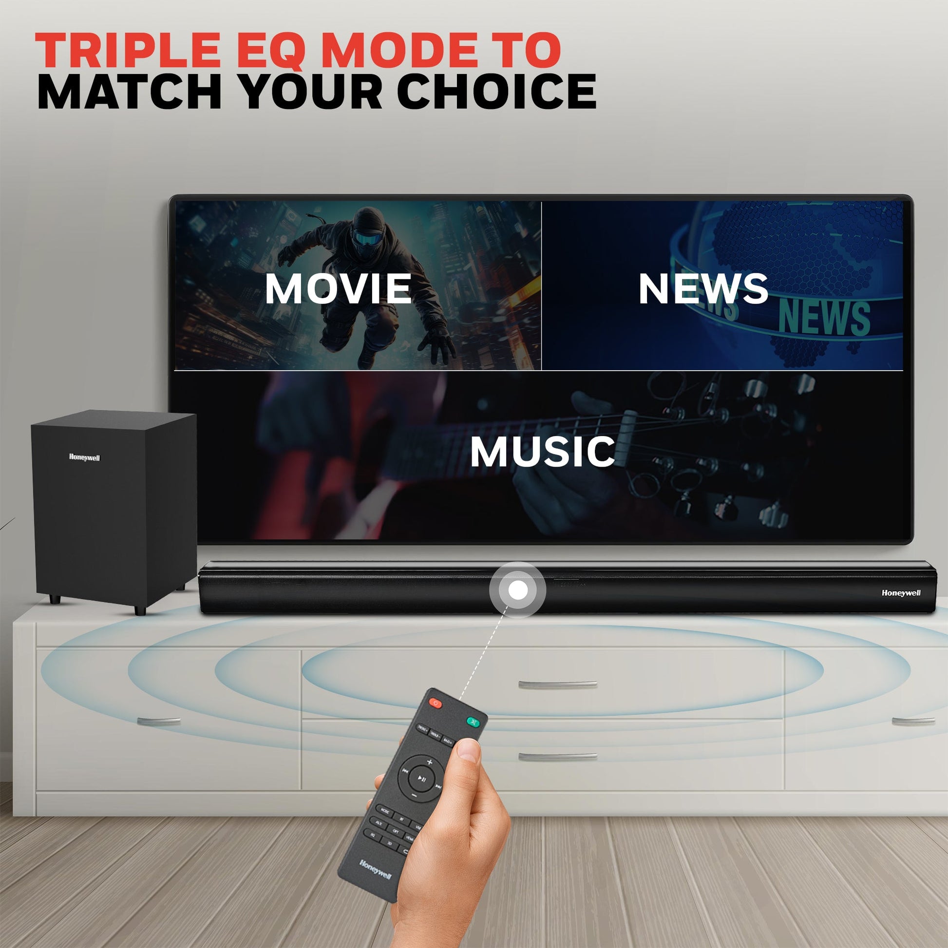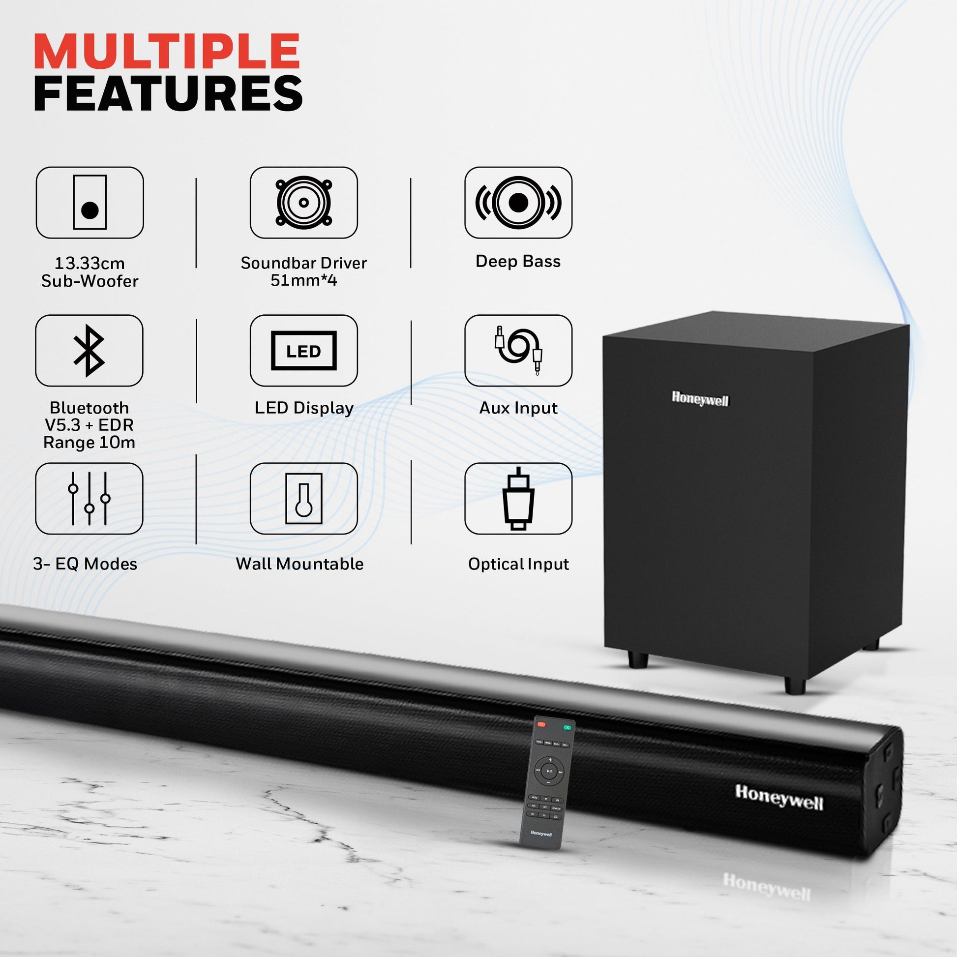 ถาม: ทำไมฉันจึงควรซื้อ Honeywell Trueno U3000 Soundbar? ตอบ: คุณควรพิจารณาซื้อซาวด์บาร์ Honeywell Trueno U3000 เนื่องจากมีดีไซน์อันชาญฉลาดและประสิทธิภาพที่เชื่อถือได้ในทุกวัน: 1. เอาต์พุต RMS 200W มอบประสบการณ์เสียงที่ทรงพลังและเต็มอิ่มทั้งห้อง 2. ไดรเวอร์ขนาด 51 มม.*4 ในซาวด์บาร์ให้เสียงที่สมจริงสำหรับการเล่นเกมและความบันเทิง 3. ซับวูฟเฟอร์ทรงพลังพร้อมไดรเวอร์ขนาด 133.3 มม. สร้างเสียงเหมือนอยู่ในโรงภาพยนตร์ที่บ้าน 4. เพลิดเพลินไปกับเสียงคุณภาพสูงที่ชัดใสด้วยระบบเสียง 2.1 แชนเนลที่แท้จริง 5. สตรีมแบบไร้สายผ่าน Bluetooth V5.3 + EDR (Enhanced Data Rate) ในระยะ 10 เมตรจากสมาร์ทโฟน พีซี แท็บเล็ต หรือทีวี 6. โหมดการเล่น 5 โหมด: บลูทูธ, AUX 3.5 มม., USB, อินพุตออปติคัล และ HDMI/ARC เพื่อการเล่นที่ราบรื่น 7. รีโมทคอนโทรลที่สะดวกสบายช่วยให้คุณจัดการระดับเสียง โหมด และอินพุตได้อย่างง่ายดาย 8. เคลือบเงาสีดำพรีเมี่ยมพร้อมดีไซน์เรียบง่ายทันสมัย 9. เหมาะอย่างยิ่งสำหรับโทรทัศน์ขนาดตั้งแต่ 43 นิ้วถึง 75 นิ้ว